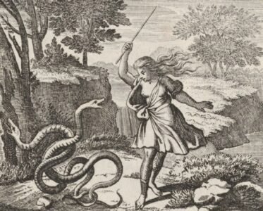 توجه بعد ذلك إلى الساحرة,وهذه مجرد إمرأة عادية تملك قدرات خارقة,لكن بلا أي حصانة من نوع ما. معزولة في غابتها,وقد تسلل إليها ببراعة,يقف خلفها. بحبل غليظ التف حول عنقها قام بشنقها.