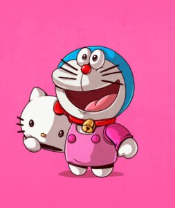 وكما فطن الرسام (…) في إحدى رسوماته ضمن سلسلة (…),فإن كيتي وايت / هالو كيتي ليست إلا تكرار لشخصية دورايمون إستغلالا للشهرة الكبيرة التي حققها في فترة قصيرة.