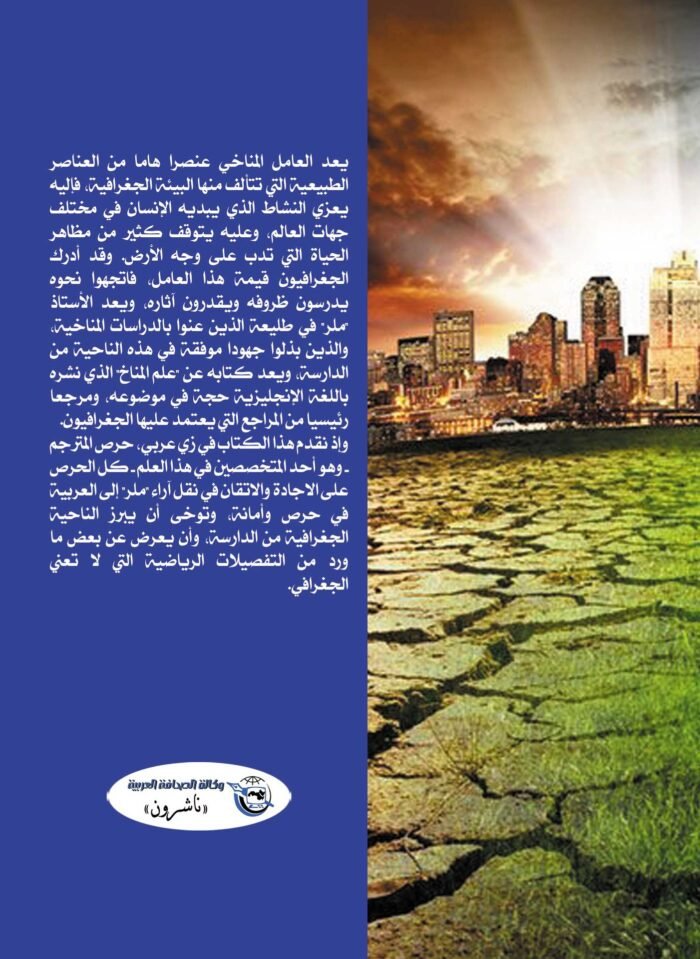 يُعَدّ العامل المناخي عنصرًا مهمًّا من العناصر الطبيعية التي تتألف منها البيئة الجغرافية، فإليه يُعزى النشاط الذي يبديه الإنسان في مختلف جهات العالم، وعليه يتوقف كثير من مظاهر الحياة التي تدب على وجه الأرض، وقد أدرك الجغرافيون قيمة هذا العامل، فاتجهوا نحوه يدرسون ظروفه ويقدرون آثاره.